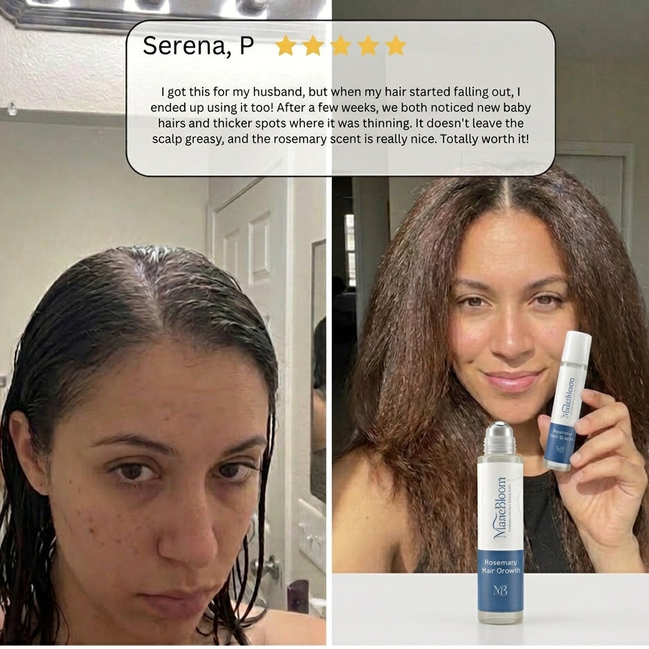 Dealing with postpartum hair loss and stress in my early 30s was crushing my confidence. I felt like a different person. But this brought my hair back to life! My hairline is fuller, my scalp feels healthier, and I finally feel like myself again. I recommend it to every new mom, it's truly a game-changer!
